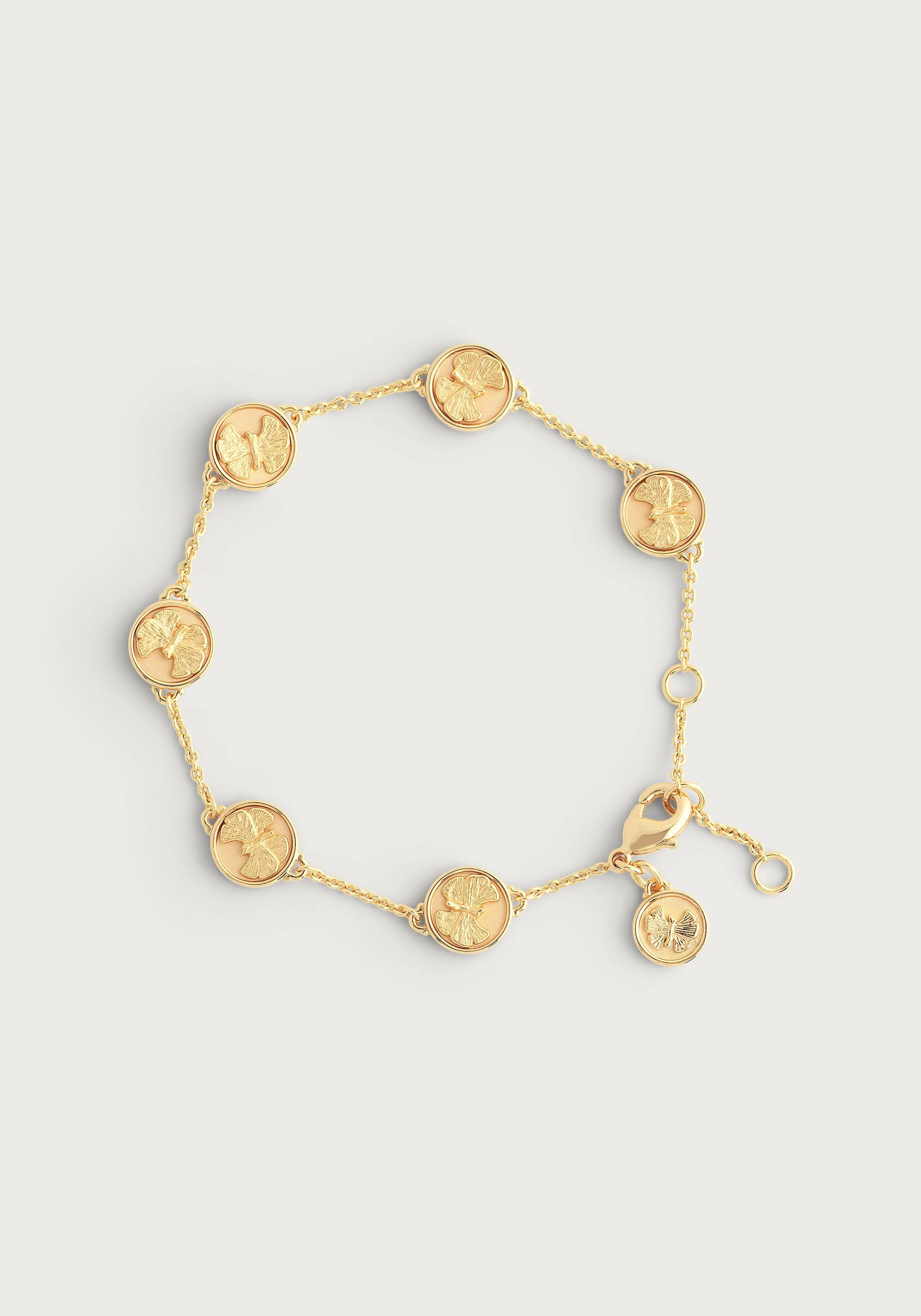 Made from 18k gold dipped brass, this adjustable-length bracelet features coins emblazoned with Anabel Aram’s signature butterfly motif, adding a subtle and captivating accent to your jewelry collection. Not just a charm bracelet, it's a way to add a touch of whimsy to your look. Made with love from high-quality materials, this coin-adorned bracelet with Anabel Aram's butterfly design is the perfect pick for any fashion-forward jewelry collection. Because let's be honest, who doesn't love a surprise in their coinage?