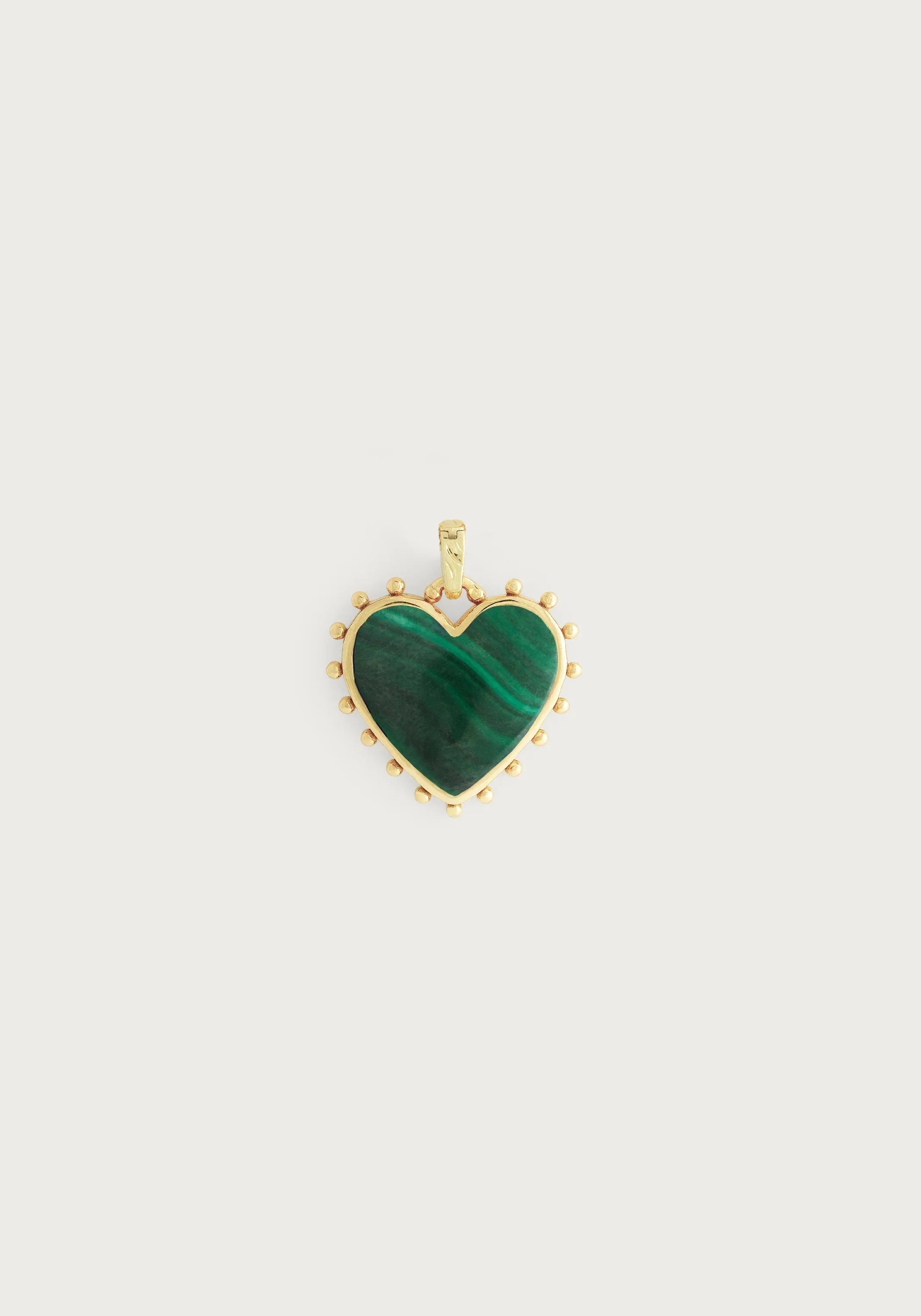 This stunning charm features a captivating carved natural rose quartz heart. Surrounded by delicate gold beads for a touch of elegance, The rich stone colors contrasts beautifully with the warm, polished gold accents. Perfect for adding a luxurious finish to any outfit, this piece combines timeless beauty with modern design.