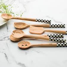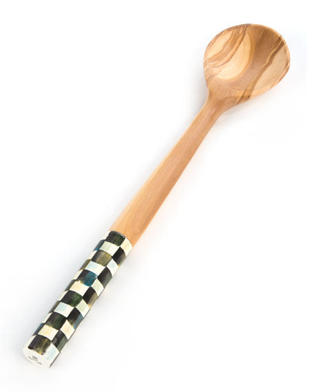 Olivewood with heavy-gauge steel handle with hand-painted Courtly Check decoration. Pieces may vary due to the handmade nature of each product.