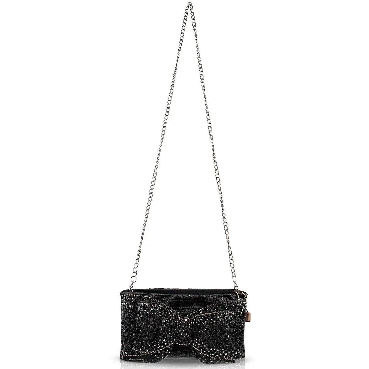 Cute meets cool in this glitzy showstopper! With its oversized sparkly bow and sleek silhouette, this purse brings serious main-character energy. Whether you're dressing up denim or dazzling in heels, it's the cherry on top of any outfit.