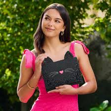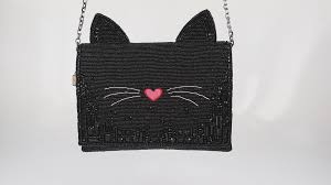 Unleash your inner feline with this beaded black cat crossbody clutch complete with charming 3D ears. Sparkling gems and an embroidered ÒmeowÓ add a playful touch, making this bag a purr-fectly stylish statement. Meow-ve over boring, this one has elevated style!