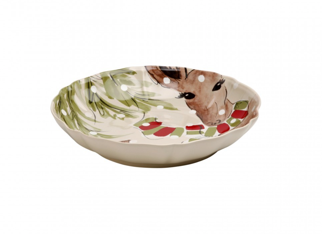 Serve up holiday treats with a smile using the Deer Friends Shallow Bowl. Crafted from durable porcelain and featuring festive deer characters, this serving ware makes it easy to add some cheer to any meal. Plus, the convenient size makes it perfect for a salad, pasta or a nice treat!
