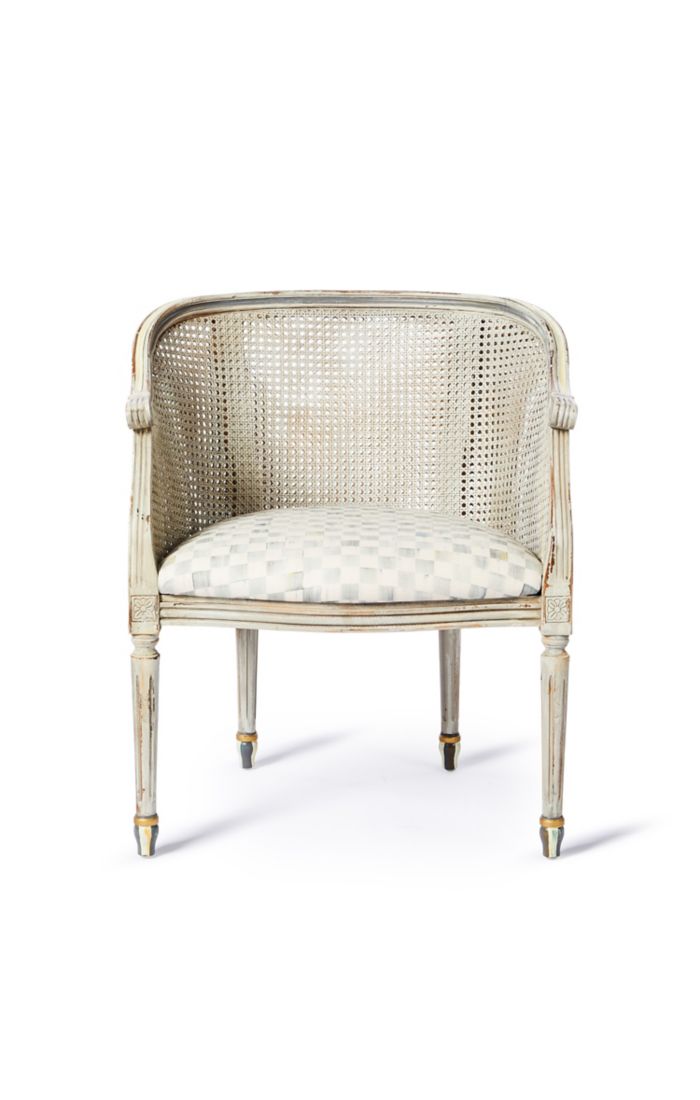 Beechwood frame with caning and hand-painting. Upholstered with 52% cotton, 48% linen fabric. Pieces may vary due to the handmade nature of each product. Imported.