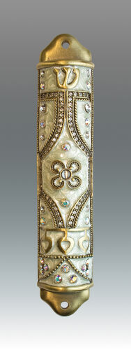 Gold/Pearl Enamel Mezuzah