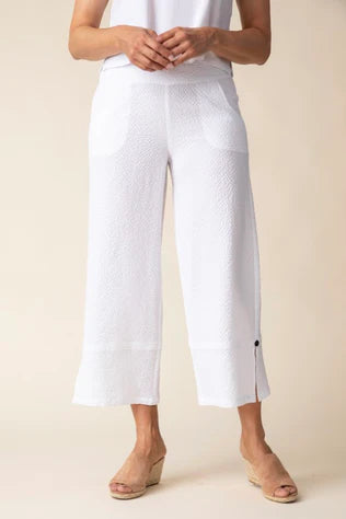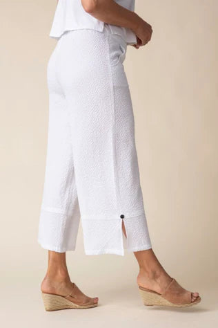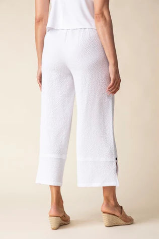 Our customer favorite rayon, polyester, spandex travel friendly fabric now available in a fun new crop pant. Crisp flat front waistband with half elastic back for a super comfy fit.