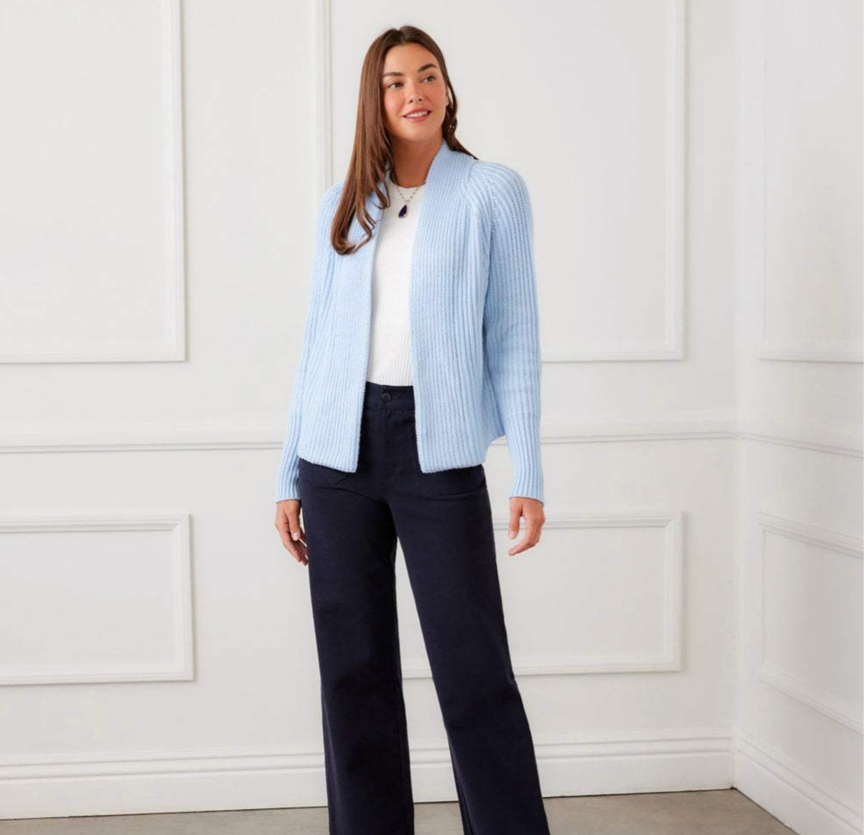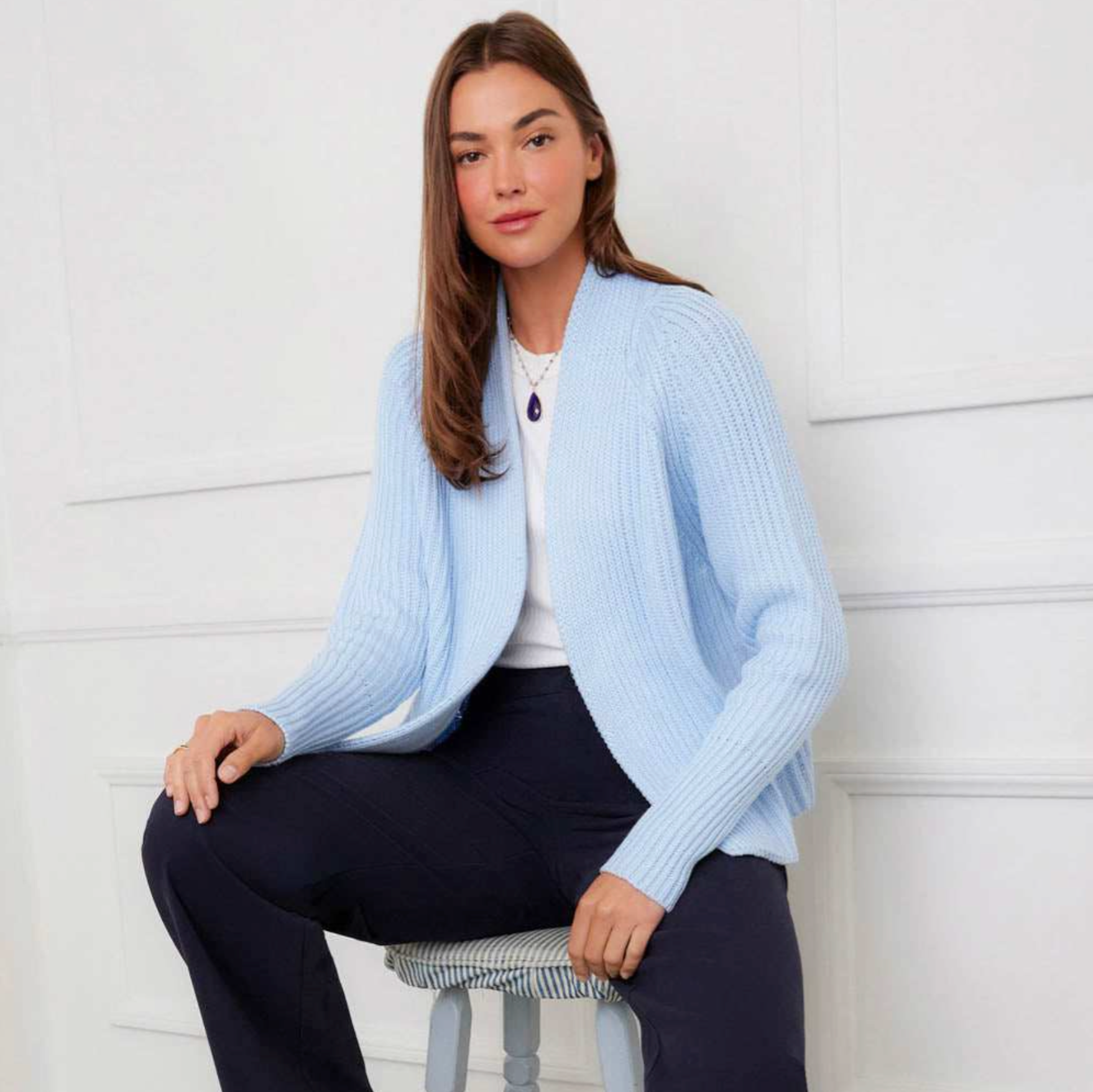 • Relaxed and easy with an open-front design that slips on effortlessly, skimming the body and sitting neatly at the waist for a flattering, lightweight layer.