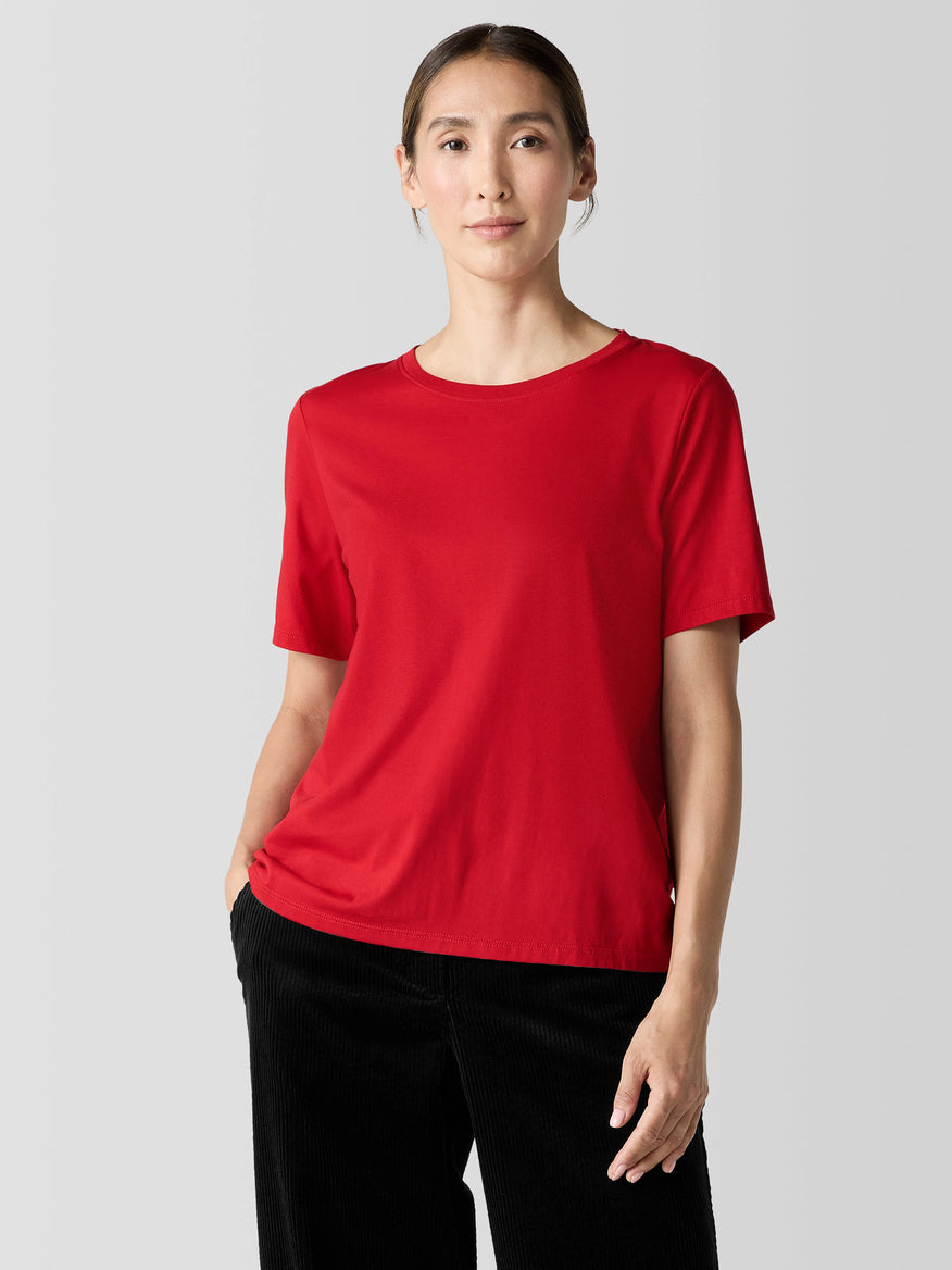 Elevate your wardrobe with our Red Basic Shirt. Crafted from 100% cotton, this shirt boasts a round neckline and short sleeves for effortless style. Comfortable and versatile, it's perfect for any occasion. Upgrade your basics and make a statement in luxury with this must-have piece.