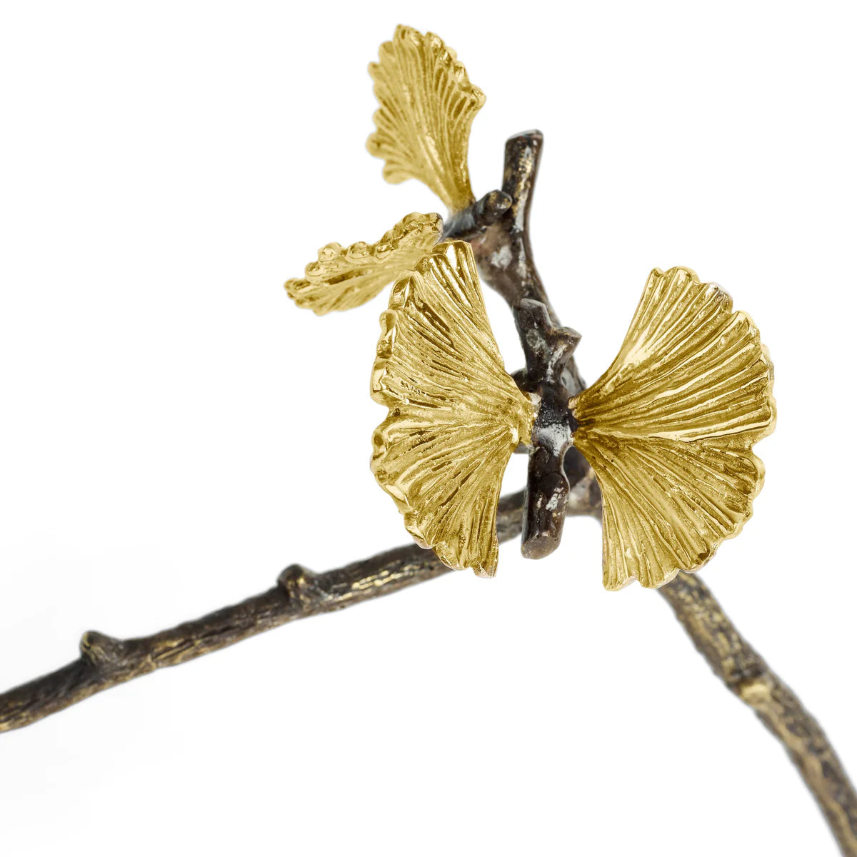 The Butterfly Ginkgo Collection celebrates the representation of flora as fauna. Michael's fascination with a particular type of ginkgo tree, the Ginkgo Biloba, or "Butterfly Ginkgo", which grows with a double leaf reminiscent of a butterfly's wings, gave rise to a fantasia image of the plant. Executed at the highest level of handcraftsmanship, each piece is rendered in solid brass with hand-etched cocoon-shaped vessels. The pieces in the collection are a tour de force of the handcrafted process, capturing the poetic spirit that is so deeply indicative of Michael's work.