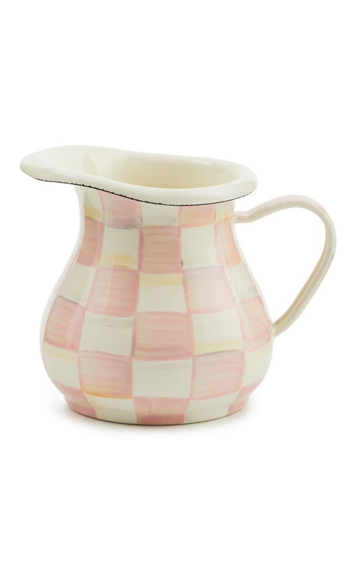 The Rosy Check Enamel Creamer is the perfect way to energize your morning cup of joe. Take your coffee black? Don’t fret—this versatile enamel vessel invites countless uses—from hot fudge to spaghetti sauce to homemade herb vinaigrette. The heavy-gauge steel underbody is glazed with hand-painted, color-dragged checks in a range of rosy hues.