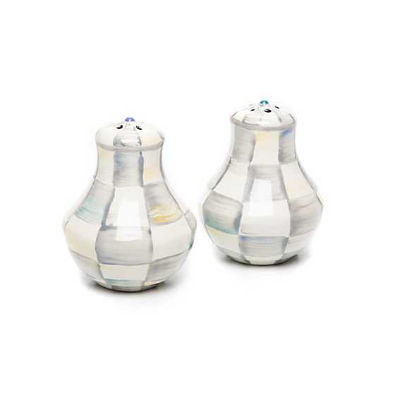 Spice up your table with Sterling Check Enamel Salt & Pepper Shakers, rendered in our grey and white pattern that complements any kitchen decor. This stylish set features a subtle jewel-tone palette woven by an artisan’s brush through the glossy, hand-painted checks.