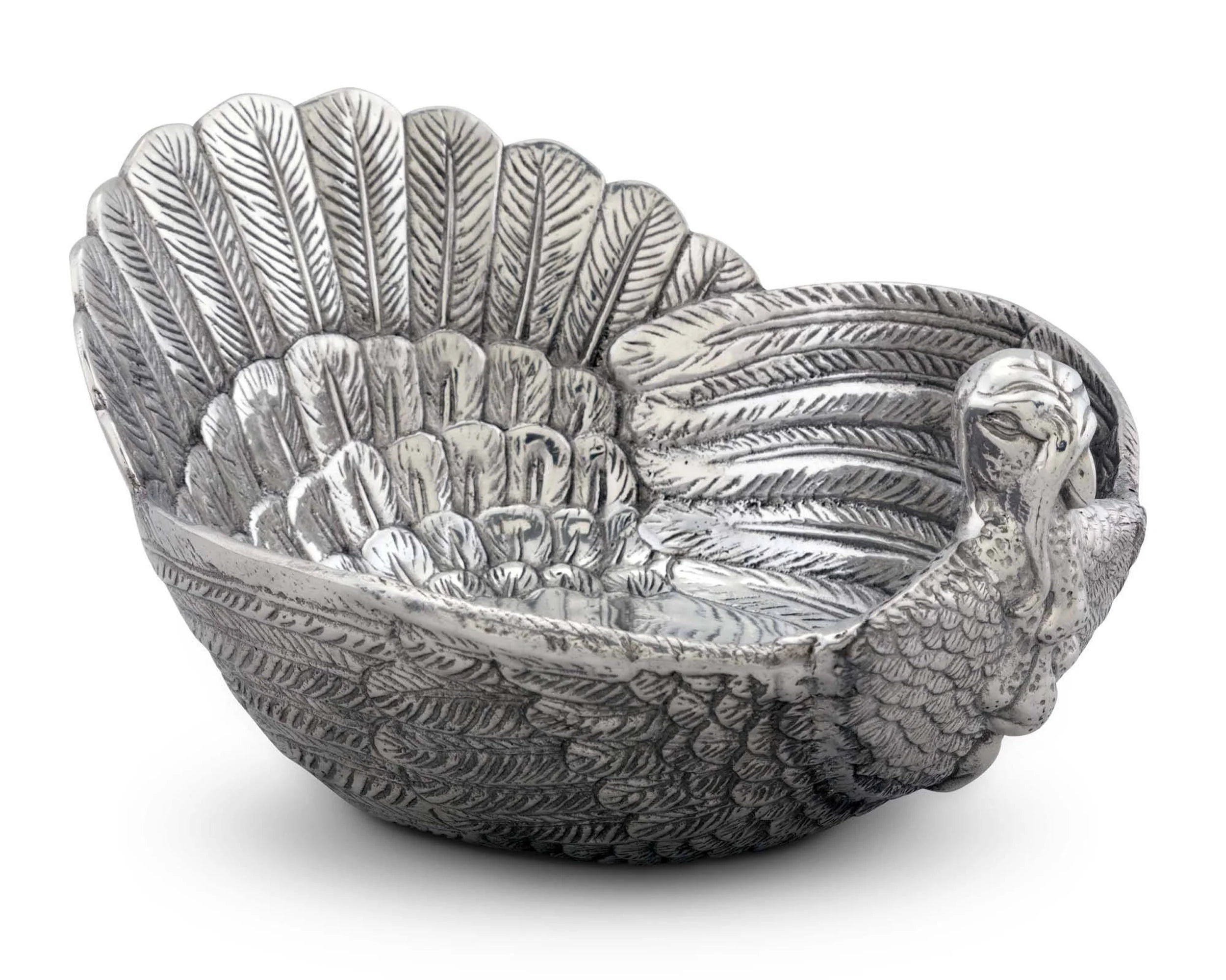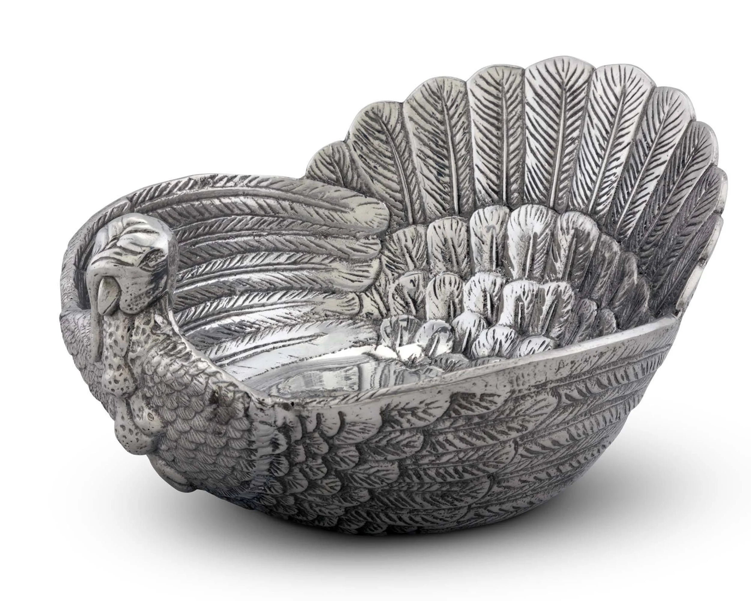 This elegant dish speaks pure festive and Thanksgiving . The detailed handcrafted turkey bowl adds a touch of luxury to your table. The remarkably detailled plumage of the turkey and the overlapping feather layers, turn this bowl into a striking centerpiece. Aluminum has a high thermal conductivity and keeps hot dishes longer hot and has a cooling effect on cold dishes as well.