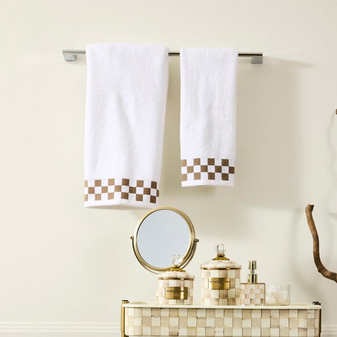 Bath Towel with Mocha Check Border