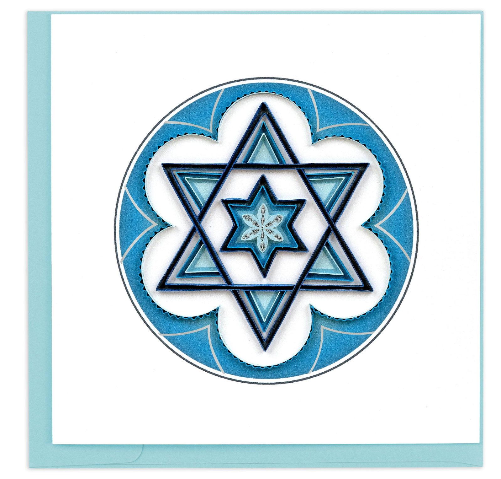 Illuminate special occasions with our Quilled Star of David Card. Meticulously crafted, this symbol of faith shines brightly in intricate quilled detail. Perfect for celebrations, it's a heartfelt way to share the beauty of tradition and spirituality.