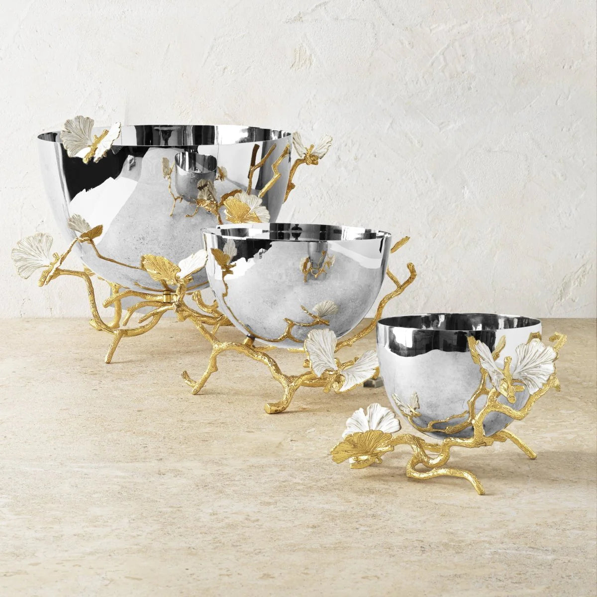 Handcrafted with exquisite attention to detail, the Butterfly Ginkgo Gold Bowl is a striking expression of luxury and artistry. Inspired by the graceful transformation of ginkgo leaves into fluttering butterflies, each bowl features sculpted natural brass branches, hand-polished to a rich gold tone, with delicate white enamel accents that lend an ethereal elegance.
