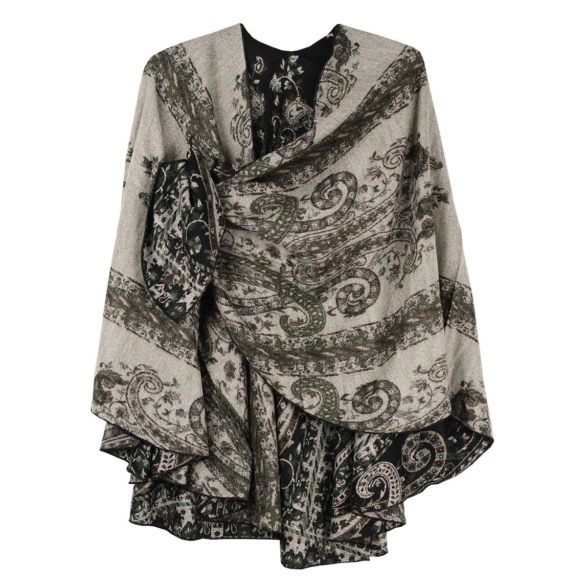 Wrap yourself in elegance on those chilly evenings with this exquisite cashmere Buckle Shawl. This wardrobe staple is sure to become a favorite. Wear it open, or wear one side looped through the buckle tab on the other side. It reverses to the same pattern in a different color scheme, making it highly versatile!