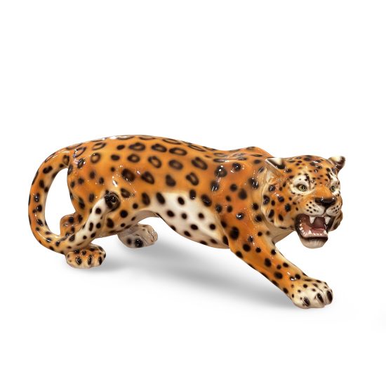 Exotic and gorgeous Italian Ceramic Cheetah statue in action brings the wild into any space. Bold and graceful highly desired among those who like a bit of adventure in their decor. Handmade by master Italian artisans.