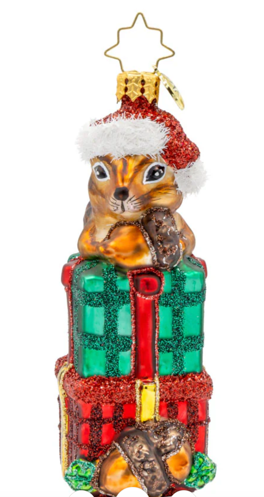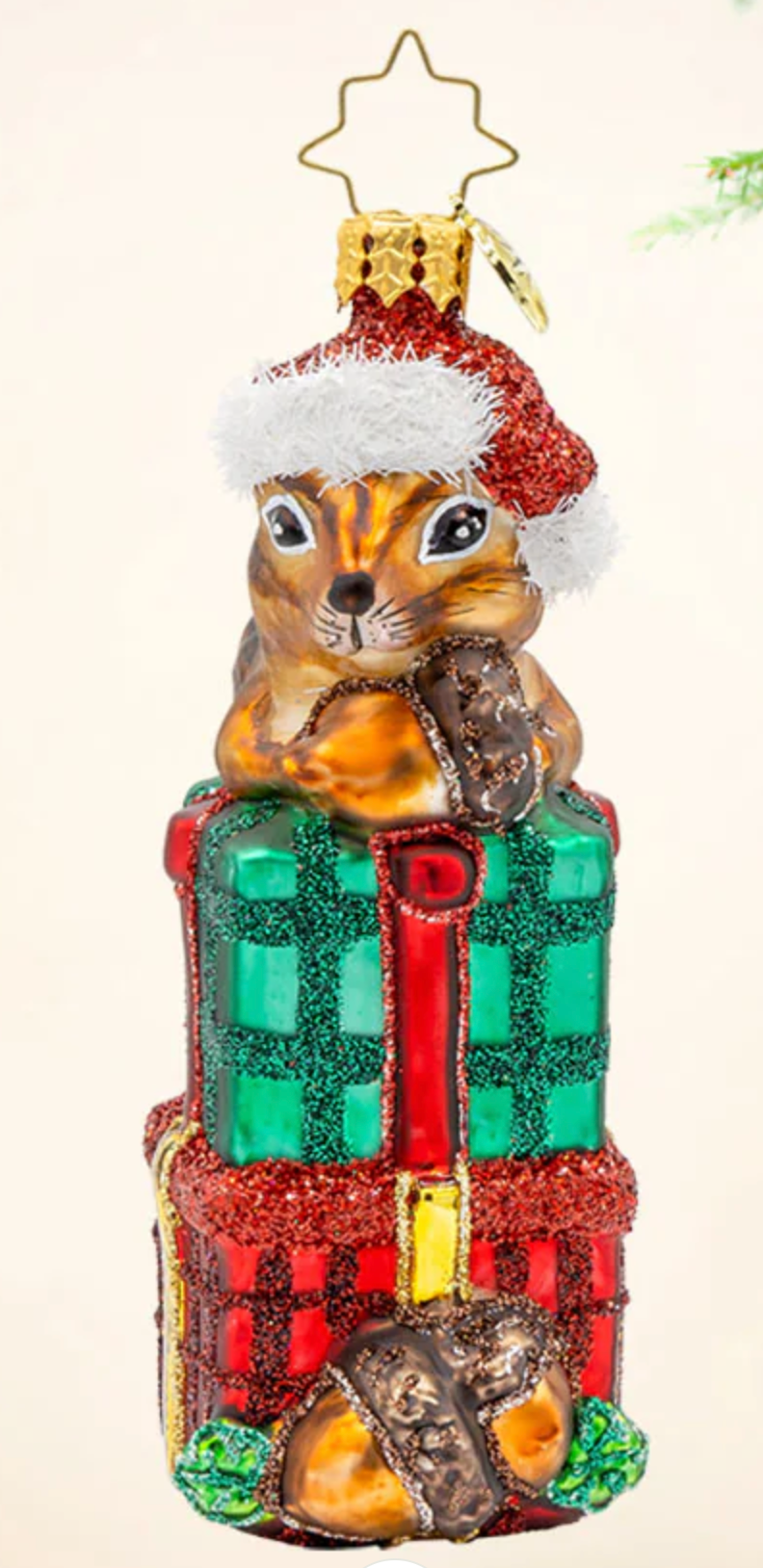 This chipmunk is causing Christmas chaos! He's got his paws all over the presents.