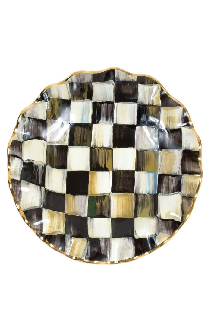 Just the excuse you need to whip up a batch of your secret-recipe macaroons. The rippling gold-lustred edge of our Courtly Check® Fluted Rim Dessert Plate perfectly complements the hand-painted pattern for a design that is timeless and modern, formal and still fun. Make dessert a real treat, with plates that are golden-edged and gorgeous. A beautiful juxtaposition of ivory and onyx, our deceptively simple signature checks reveal an intricate spectrum of jewel-toned colors. Handmade, fired, glazed, fired again, hand-painted, fired again, and embellished with lustre, each piece is stamped by the artisans involved in its creation.