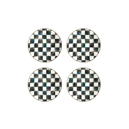 Tapas? Noshes? Tasty treats? This slightly smaller silhouette of the Courtly Check® Salad Plate Set offers the same warm, inviting high-contrast gloss of our most popular pattern. The comfort food of dinnerware, our most popular pattern is casual and cozy, with a subtle jewel-tone palette woven by an artisan’s brush through the glossy, hand-painted, high-contrast checks.