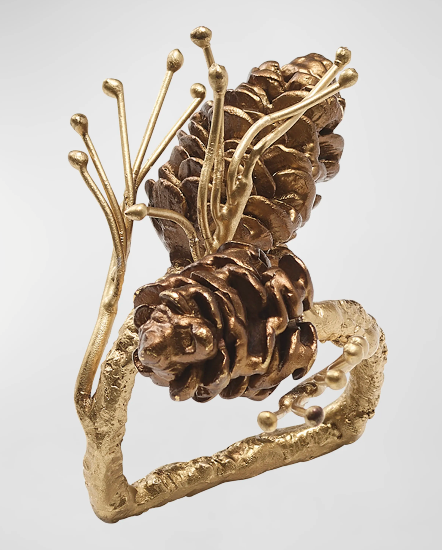 - Gilded pine napkin ring crafted in brass-plated aluminum