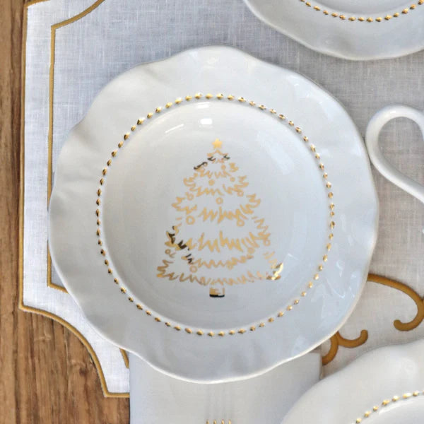 Giorno di Festa translates to a day of happy events," and this sophisticated, joyful dinnerware ensures just that. A simple gold tree and wreath adorn the Giorno di Festa Pasta Bowl and the result is timeless. You will enjoy this collection every holiday season for decades to come.