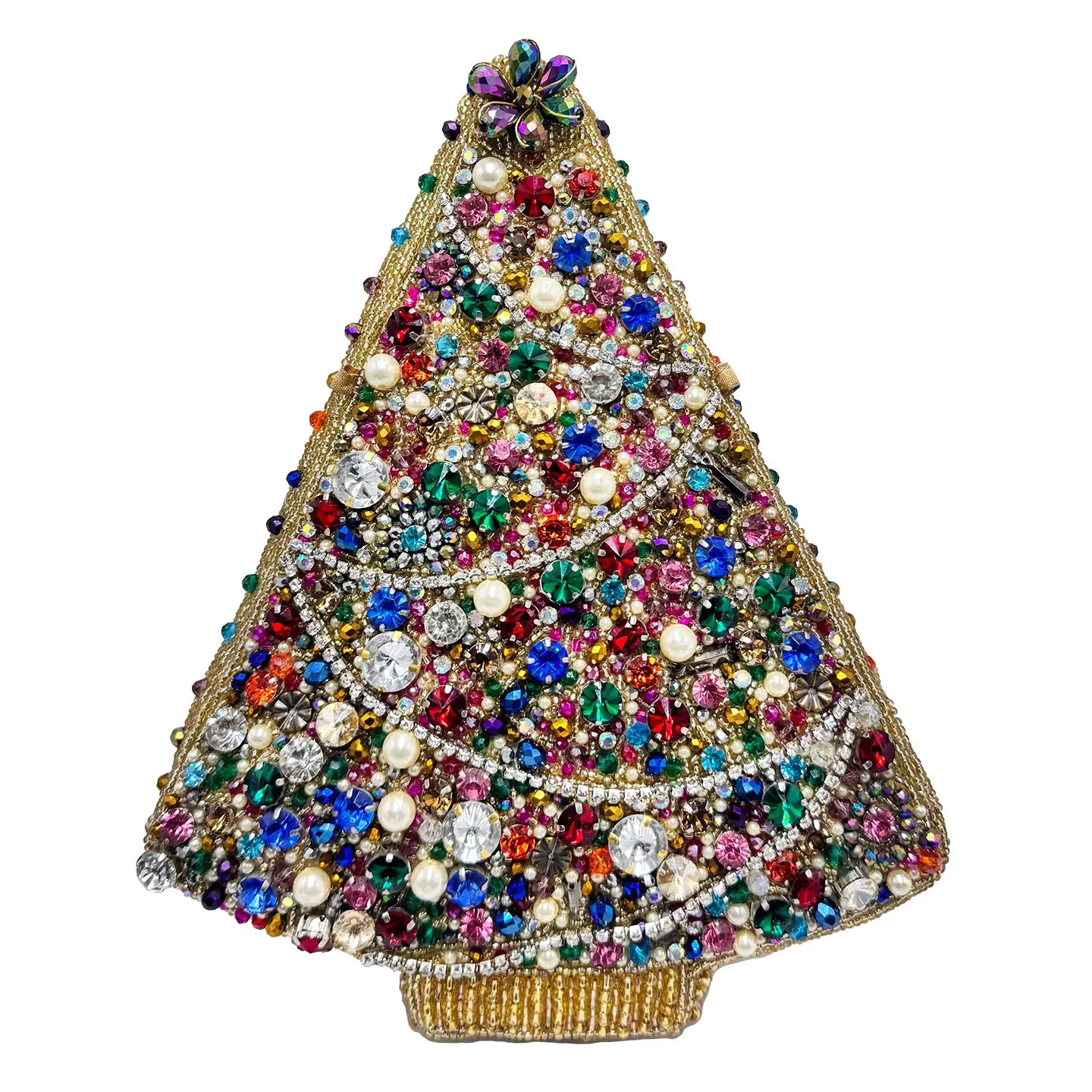 Shine bright this season with Glittering Joy, the purse that brings holiday magic to life! Shaped like a festive Christmas tree and covered in colorful beads and pearls, this handbag is pure celebration in accessory form. It's your go-to for turning every outing into a sparkling holiday moment!