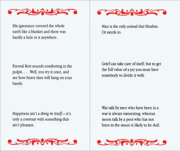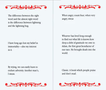 Handsome pocket-sized volume presents a range of quotations by America's foremost satirist, Samuel Clemens, known by his pen name, Mark Twain.