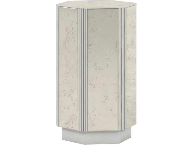 Add a hint of Paris to your space with this perfectly petite spot table. It features a faceted shape and plinth base that evoke the feeling of an architectural column, beautifully finished in antiqued mirror. Subtle vertical reeding separates the facets, offering just a touch of texture to this dazzling piece.