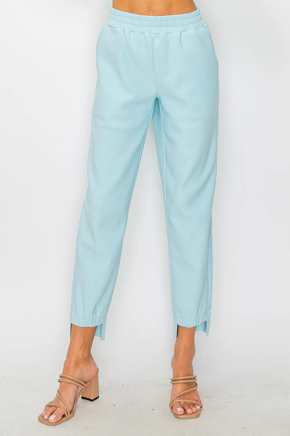 The Katie pant. Made with high quality crepe knit. Elastic waist for the perfect fit. Side pockets and side contrasts. Bottom high-low with details. Easy relax fit. Stylish and comfort.