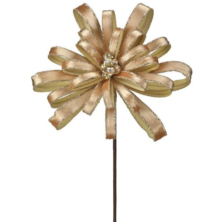 Introducing our Petal Blossom Stem - a stunning 19" addition to your decor. With glittery edges and delicate petals, this stem adds a touch of elegance to any space. Bring a luxurious touch to your home with this exclusive piece reminiscent of a blooming flower.