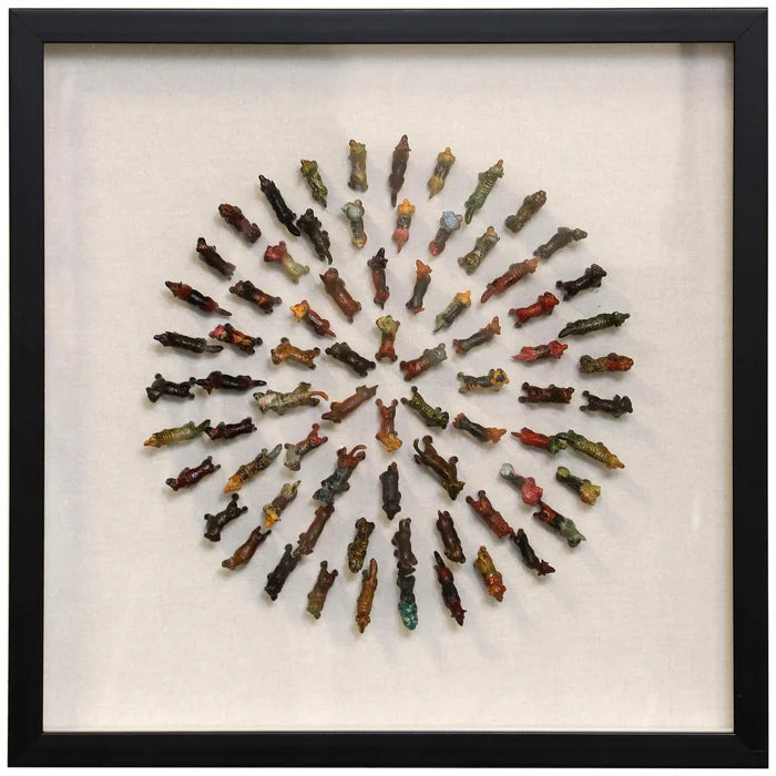 Celebrate canine charm with the Pooch Parade I wall art—a delightful shadow box featuring an energetic arrangement of colorful dog figures dancing in circular motion. Rendered under glass with rich, multi-color details, this playful piece captures movement and personality while the sleek black frame adds contemporary sophistication. Perfect for dog lovers and art enthusiasts alike, it brings warmth, whimsy, and visual interest to any room.