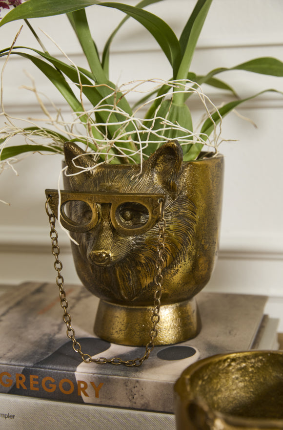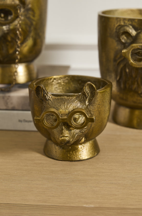 Introduce whimsical charm to your home with the Eric & Eloise Collection, designed by artist Jessica Heimstra. Crafted from recycled cast aluminum with an antique gold finish, this delightful series features a bespeckled fox, a friendly faced bear, and a bowtied mouse. Each piece adds a refined and friendly touch to your home decor. Explore the full Eric & Eloise family to deck the halls, shelves, & tables with these playful faces.