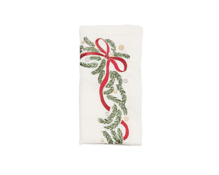 White Xmas Ribbon Napkin is backordered and will ship as soon as it is back in stock.