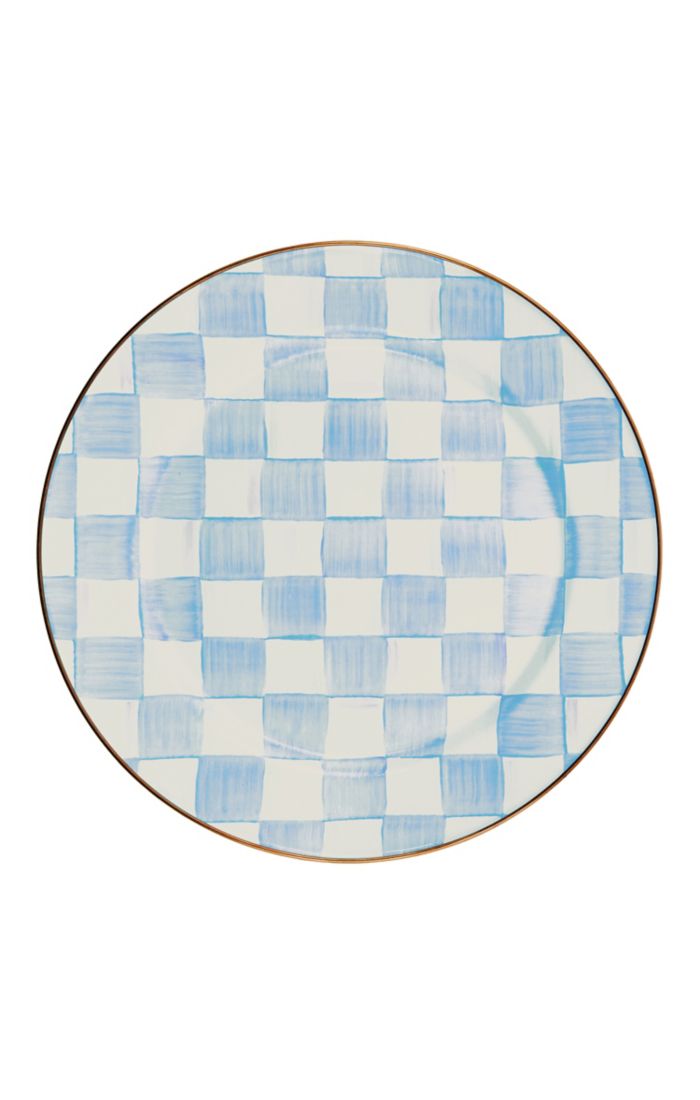 Heavy-gauge, hand-glazed steel underbody with hand-painted Sky Blue Checks, rimmed in bronzed stainless steel. Pieces may vary due to the handmade nature of each product. Imported.