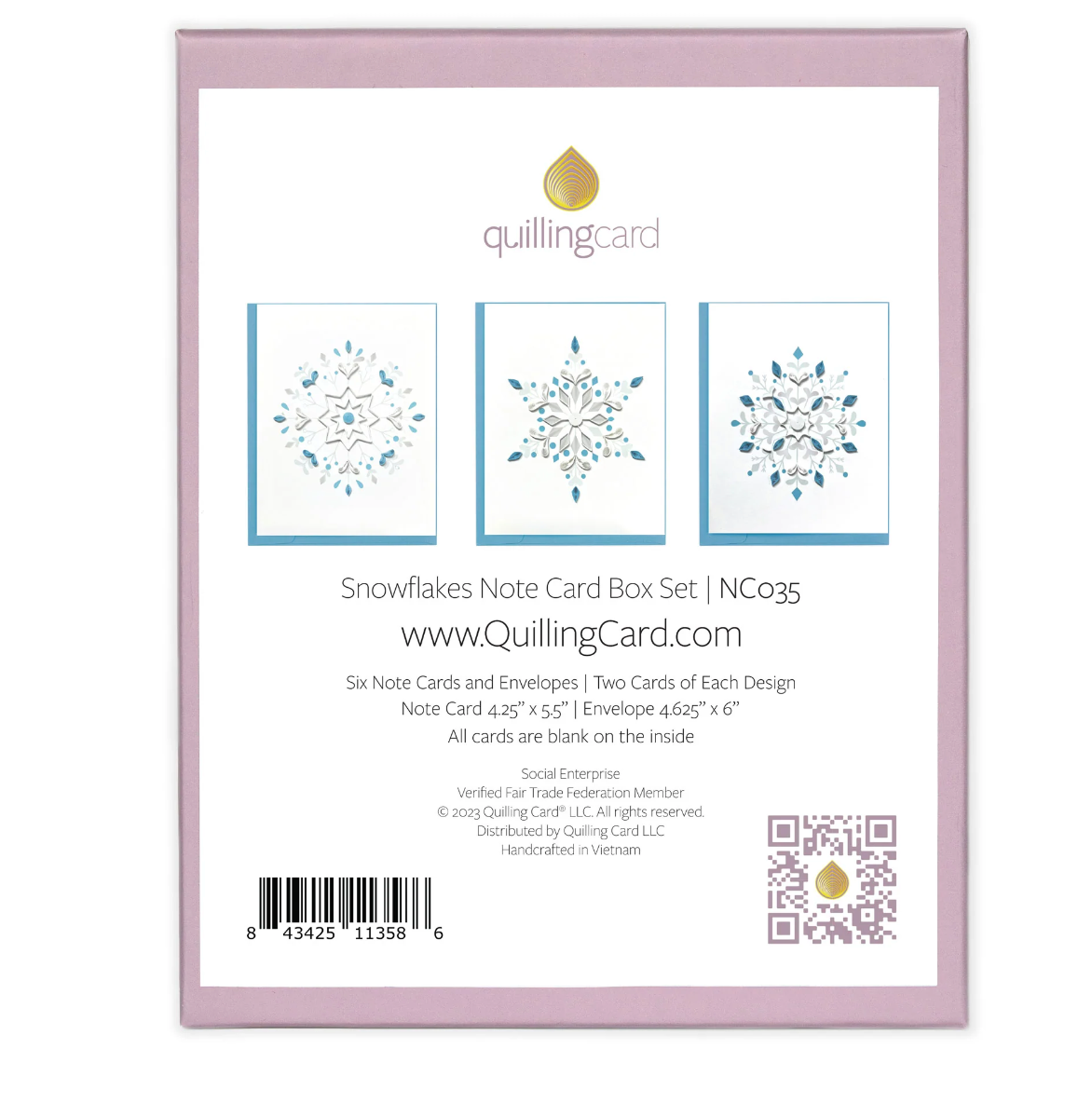 Elevate your messages with our Snowflake Note Card Box Sets, showcasing a captivating collection of six cards inspired by the intricate beauty of snowflakes. Each card, meticulously designed and replicated in pairs, provides a perfect canvas for expressing well wishes, sending invitations, or conveying gratitude. Paired with matching envelopes and featuring blank interiors, these note cards offer a pristine backdrop, allowing your personal touch to shine like glistening snow. Immerse your correspondence in the magical allure of winter with our Snowflake Note Card Box Sets, where every note becomes a symphony of seasonal elegance and frost-kissed charm.