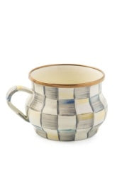 Heavy-gauge, hand-glazed steel underbody with hand-painted Sterling Checks, rimmed in bronzed stainless steel. Pieces may vary due to the handmade nature of each product. Imported.
