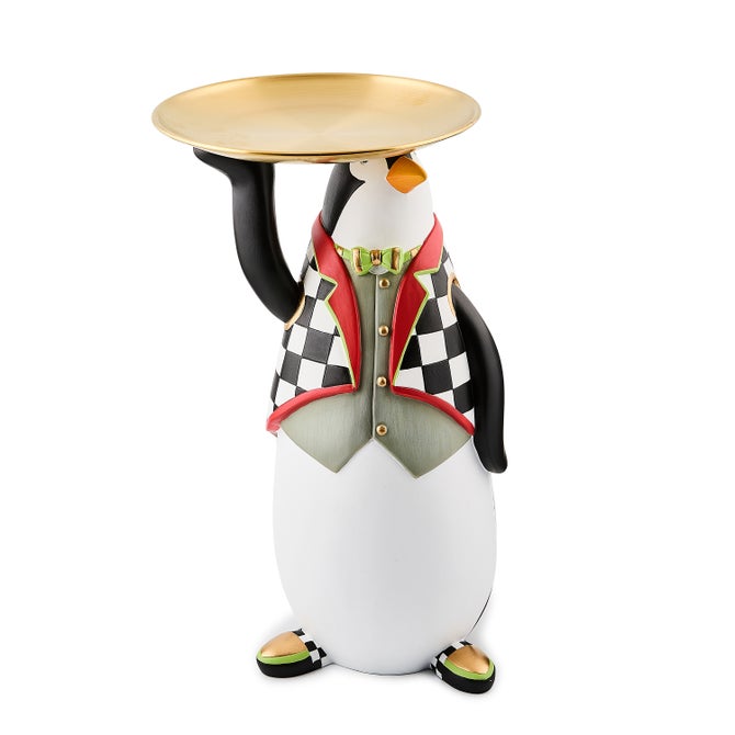 Bring home a piece of handcrafted holiday magic with the Patience Brewster Thaddeus Penguin Butler. Features the handsome penguin dressed up in his holiday best and hoisting a serving tray above his head, ready to serve up the holiday treats! Finely crafted and filled with personality, every Patience Brewster piece is perfect for gifting or building your unique collection.