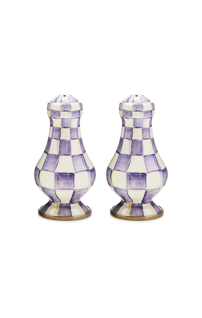 Violet Check Large Salt/Pepper Shakers