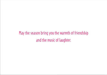 Greeting: May the season bring you the warmth of friendship and the music of laughter.
