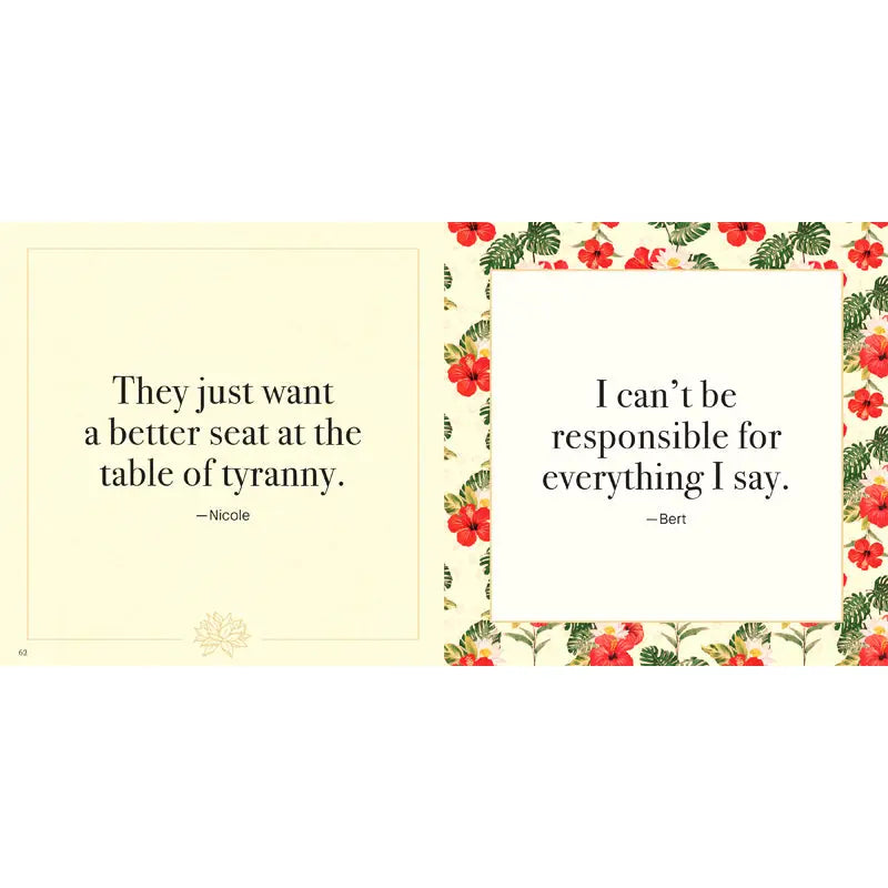 A stunning, compact gift book, The White Lotus: Heard Around the Resort explores romance, money, family, and other themes through the brightly funny framework of the limited-series turned anthology mega-hit. Within these vividly designed pages, fans can revisit the high-glam lifestyles and sharply drawn perspectives of The White Lotus‘s picture-perfect characters in their own words. And if any takeaways resonate, well, “it’s not stealing when you think everything’s already yours…” ONE OF A KIND: The only officially licensed quote book made in partnership with the studio behind the award-winning series EXPANSIVE CONTENT: Including the best quotes from fan-favorite characters across seasons, including Tanya McQuoid, Harper Spiller, Bert Di Grasson, and more! GIFTABLE: With a thoughtful, compact design to put fan-favorite moments right in their hands.