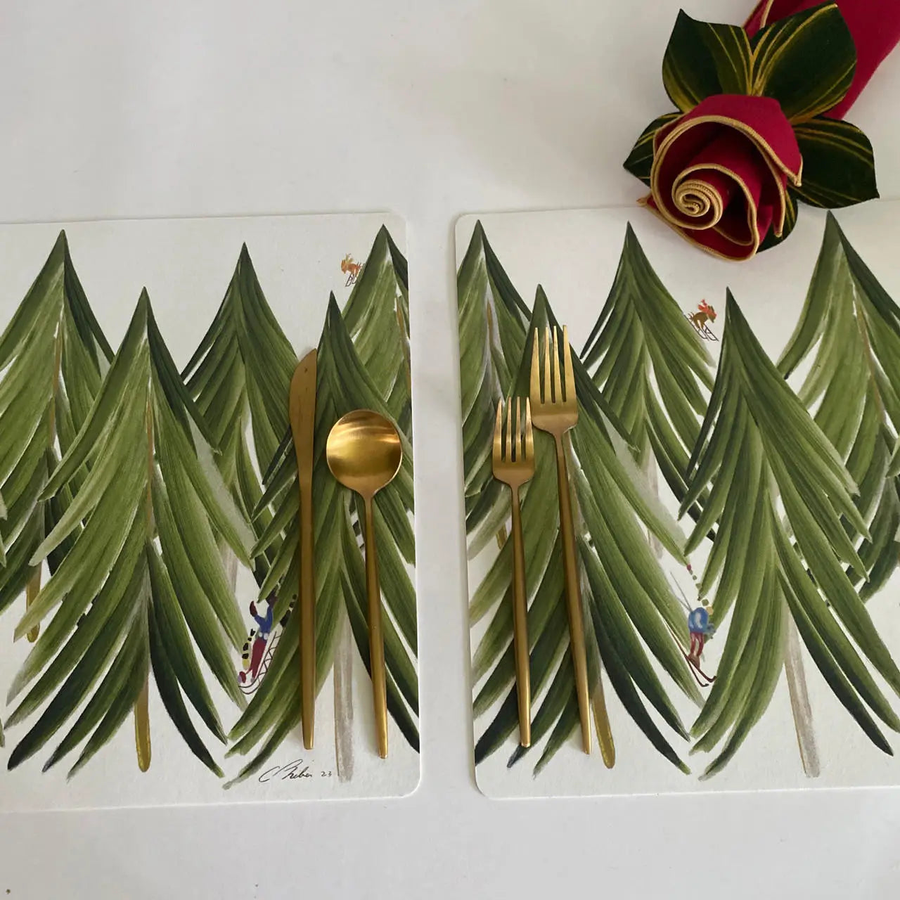 Hand-painted reusable placemat designs! Carole Shiber's Rectangular Winter Mountain Placemats provide a fun and artful landscape to set all around the table... just like a festive winter wonderland! Click on Napkin & Rings Option to add this beautiful and easy-care napkin and hand-painted napkin ring complement. DETAILS: - 17" x 13" - Sponge clean - Made in Chile - Luxurious and flexible vinyl - Hand-write each guest’s name for a personalized touch! Why Carole Shiber Designs? -Hand-painted designs in Carole's own symmetrical fountain-style brush strokes -Perfect for dinner parties, bridal showers, holiday gatherings, garden parties -Great housewarming and hostess gifts! -Functional art for the table -All pieces can be mixed, matched, and overlapped for the perfect table setting People also search for... -Hand-painted designs -Reusable placemats -Reusable centerpieces -Dining table decor -Housewarming gifts