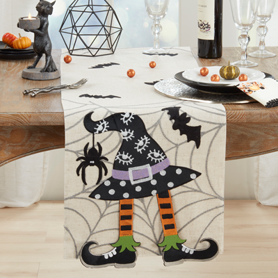 Add a touch of spooky charm to your table with the Witch Hat Runner. Crafted from a cozy blend of 84% polyester and 16% linen, this 16" x 70" oblong runner is easy to care for—just cold machine wash on a delicate cycle and hang dry. Perfect for Halloween or anytime you want a playful witchy vibe!